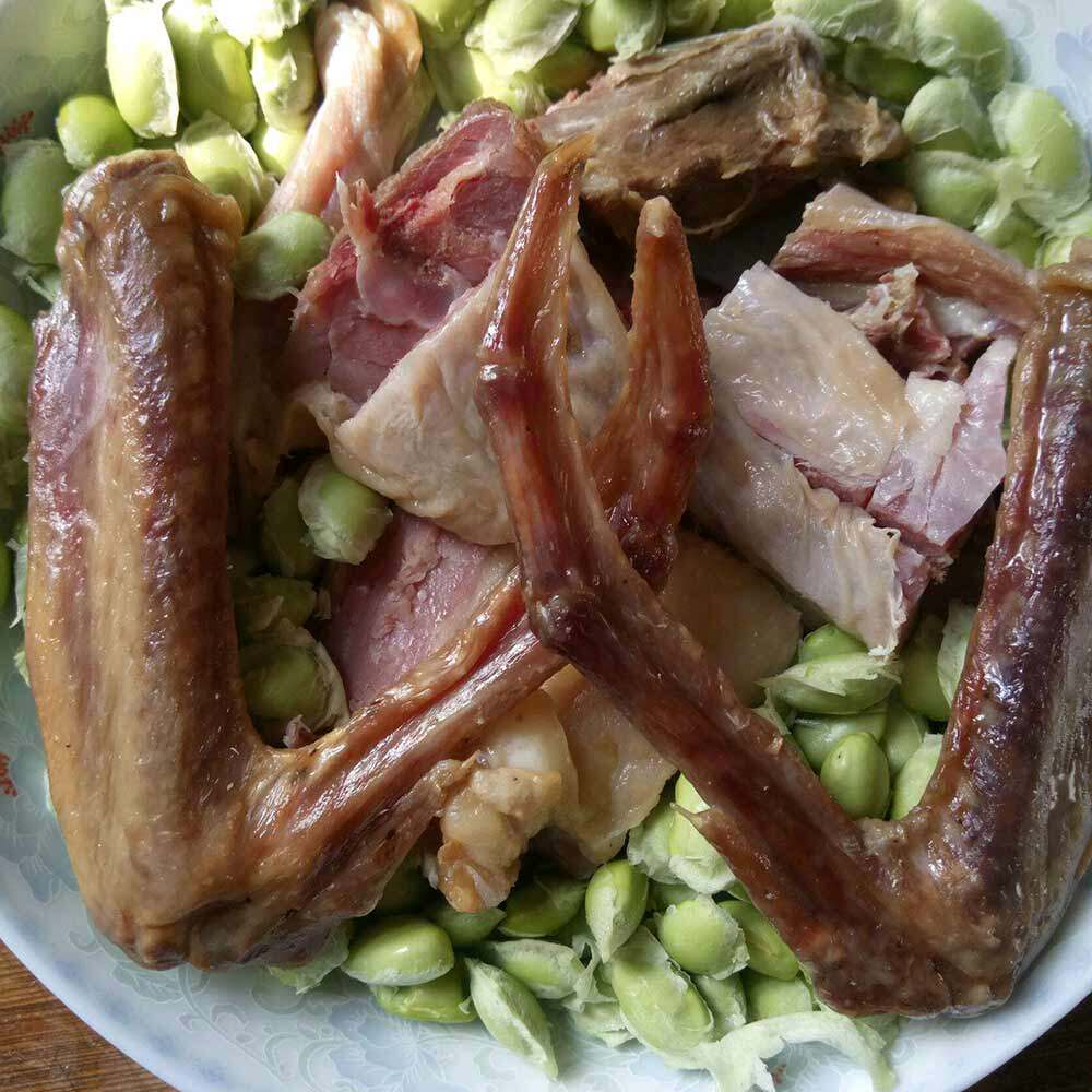 腊鸭主要食材是屠宰过的鸭子,调料有盐、五香粉、二锅头,制作方法为鸭子腌制过后,采用日晒方式进行脱水,晒干即成。
