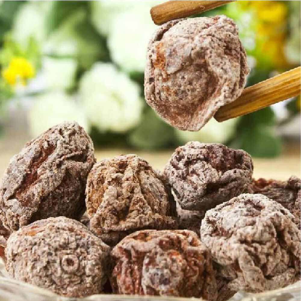 咸话梅是芒种后采摘的黄熟梅子(俗称黄梅)经过加工腌制而成。黄梅从树上采下洗净,放大缸里用盐水泡浸月余,取出晒干;晒干后用清水漂洗,再晒干;然后用糖料泡腌,再晒干,如此多次反复,最后成为肉厚干脆、甜酸适度的话梅。